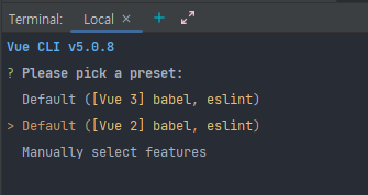 설치시에 아래와 같이 선택해야 하는데 나는 Vue2로 선택!