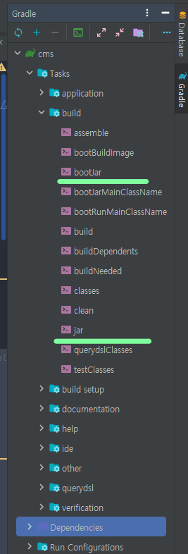 - gradle 의 "bootJar" task 로 생성