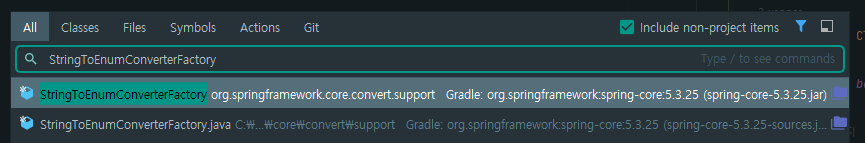 바로 Spring 에서 기본적으로 제공해주는 StringToEnumConverterFactory 덕분에 Enum의 name값으로는 매핑이 가능한 것이다.