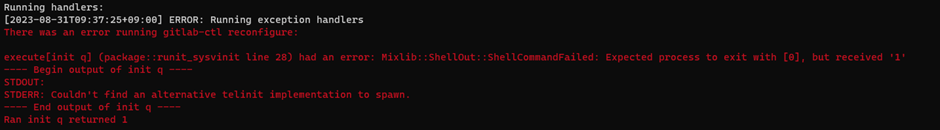2. gitlab-ctl reconfigure 시 아래와 같은 에러 문구 노출되며 재설정이 완료되지 않는 문제 발생