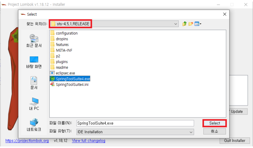 2. lombok.jar가 있는 디렉토리로 가서 jar파일을 sts가 있는 폴더로 옮겨주기