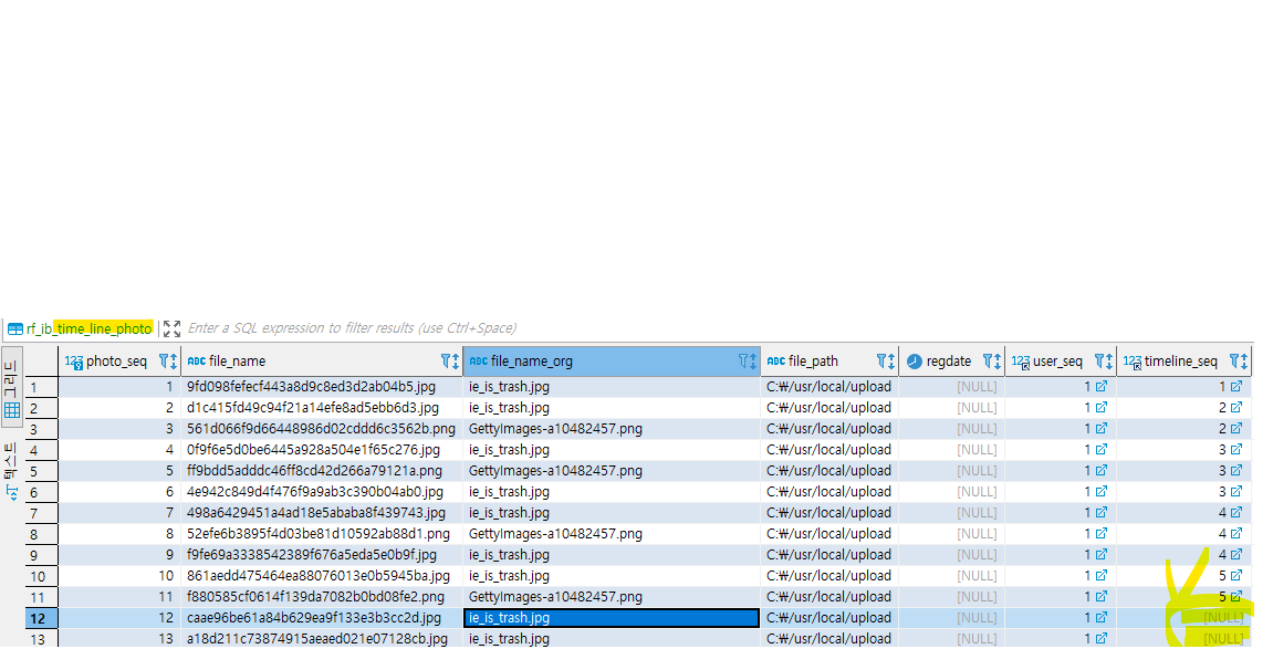 위 코드가 정상적으로 실행이 되었다면 DB에는 아래와 같은 변화가 생긴다.